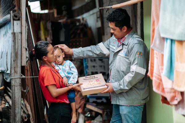 Balita stunting mendapatkan pemberian makanan tambahan untuk meningkatkan asupan gizi sebagai bagian dari upaya mengatasi stunting dalam program CSR Denting Nusantara yang dilakukan PLN NP UP Muara Karang.