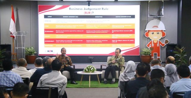 Direktur Antikorupsi Badan Usaha KPK, Aminudin memaparkan Business Judgement Rule (BJR) menjadi batas manajemen atau direksi dalam pengambilan keputusan tanpa niat jahat guna mencegah dampak buruk. ‘’Intinya sebagai landasan utama dalam prinsip BJR direksi harus bertindak dengan niat yang jujur dan tulus untuk kepentingan perusahan dalam pengambilan keputusan bukan untuk keuntungan pribadi atau pihak lain,’’ paparnya dalam workshop.