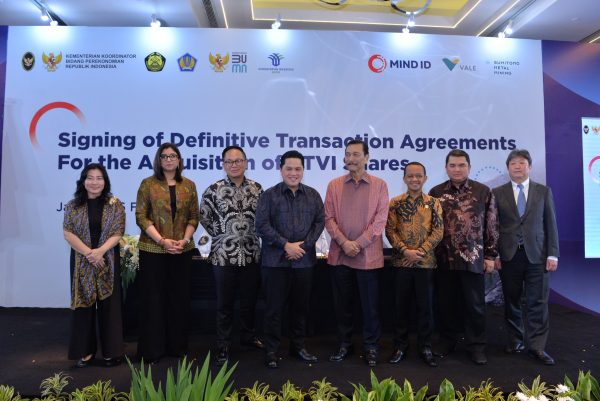 RESOURCESASIA.ID, JAKARTA – PT Mineral Industri Indonesia (MIND ID) sebagai wakil Pemerintah Republik Indonesia bersama dengan Vale Canada Limited (VCL) dan Sumitomo Metal Mining Co., Ltd (SMM) pada Senin 26 Februari 2024, berlokasi di Jakarta, telah menandatangani serangkaian perjanjian definitif dalam rangka divestasi saham kepemilikan asing PT Vale Indonesia Tbk (“PT Vale” IDX Ticker: INCO).