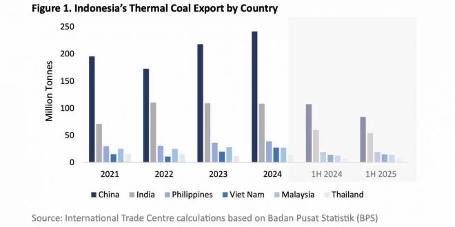 Berdasarkan data konsolidasi yang dihimpun Intracen dan ESI, meski terjadi penurunan 21% dibanding tahun lalu, ekspor batu bara Indonesia ke Tiongkok pada semester I-2025 mencapai 84 juta ton. Sementara total ekspor Indonesia ke empat negara di kawasan tersebut hanya sebesar 55 juta ton pada periode yang sama.