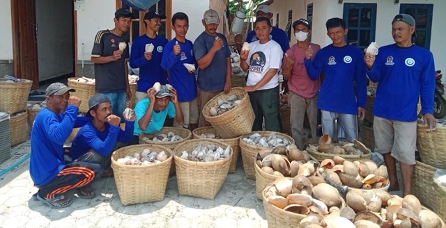 Tidak sekadar menerima bantuan alat tangkap, para nelayan juga aktif merangkai bubu secara mandiri. Sebanyak 7.500 cangkang keong dan 140 gulung tali berhasil dirakit menjadi 30 unit bubu gurita. Setiap unit terdiri dari 250 cangkang yang diikat dengan tali berdiameter 3 milimeter. Hasil rakitan ini kemudian dimanfaatkan secara bergantian oleh tiga kapal berawakkan enam nelayan.