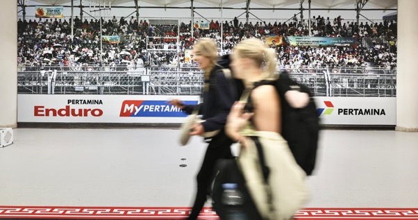 Sambutan hangat langsung menyapa mereka. Replika grafiti Pertamina Grand Prix of Indonesia berdiri mencolok, spot foto dengan pembalap Pertamina Enduro VR46 Racing Team, Fabio Di Giannantonio, menjadi rebutan, sementara nuansa budaya lokal berupa motif tenun ikat khas Suku Sasak menambah eksotisme di area bandara. Suasana ini membuat para tamu seolah langsung diajak masuk ke dalam euforia Mandalika.